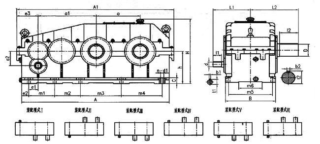 型號 | a | a1 | a2 | A | A1 | B | H | h | n | d1 | C | e1 | e2 | e3 | m6 |